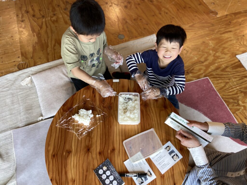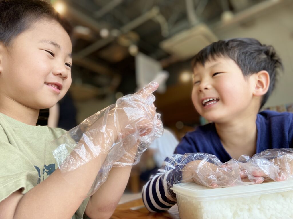 手で触れて結んで、出来立てのおにぎりを食べる。